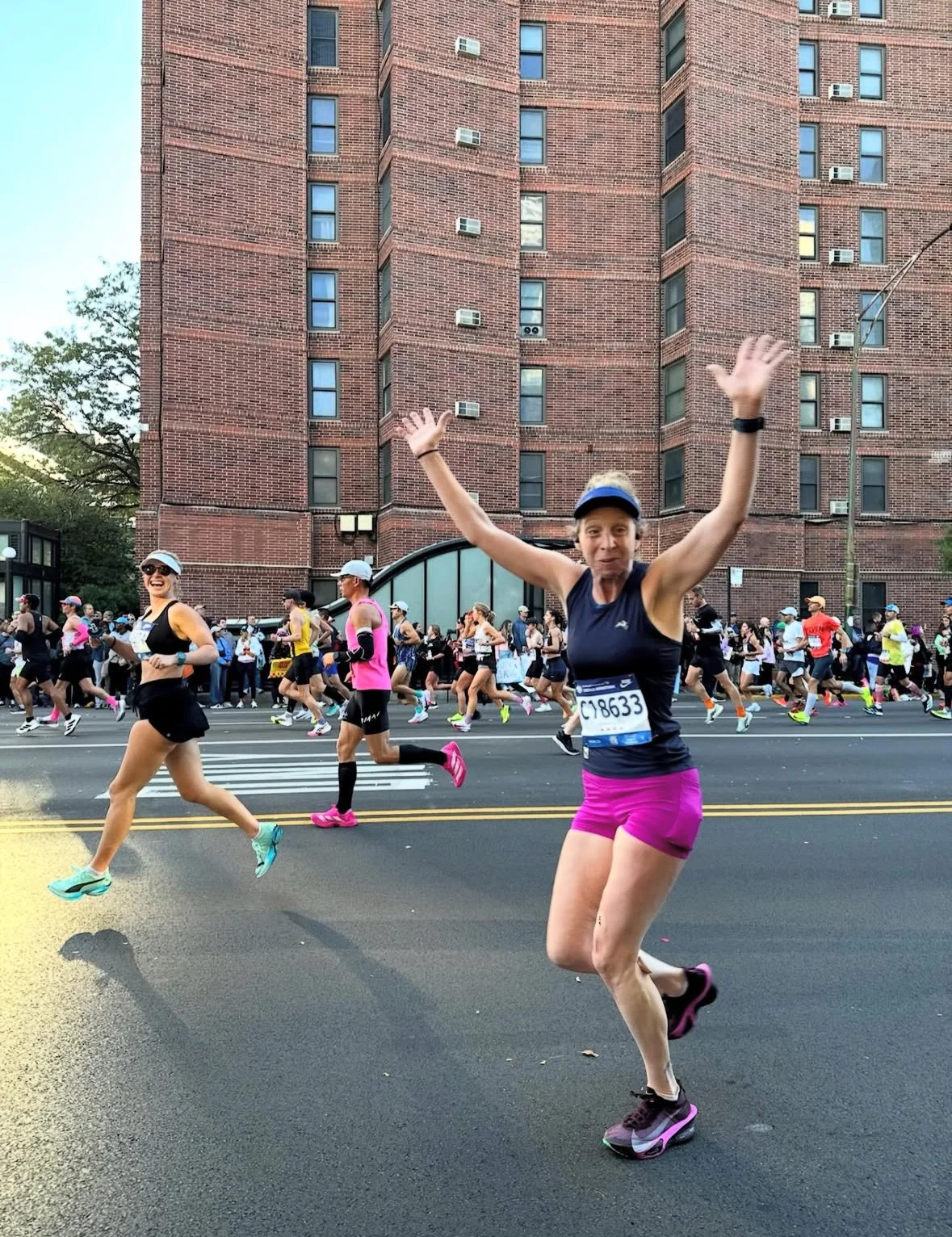 Running Joyfully Elite members Krystyna and Annelise, coached by Coach Kaitlin, both ran significant personal bests and had breakthrough days in Chicago! Krystyna has dropped 14 minutes off her marathon time in the last year, improving on her 2:54 in Boston this spring to run 2:44 in Chicago, good for a top 60 finish. And we’re pretty sure she was the top med student finisher too! Krystyna began medical school at Columbia this fall, but you wouldn’t know it from her stellar training log, fitting in big miles in between classes. Meanwhile, Annelise took 8 minutes off her PR, running the most joyful 2:47 out there (you should have seen how much fun she was having!) to finish in 80th overall. Annelise fit in her training while traveling to conduct post-doc fieldwork in Ghana, fitting in big miles wherever her work took her. More big things to come from both of these fast ladies, on the roads and in their careers!